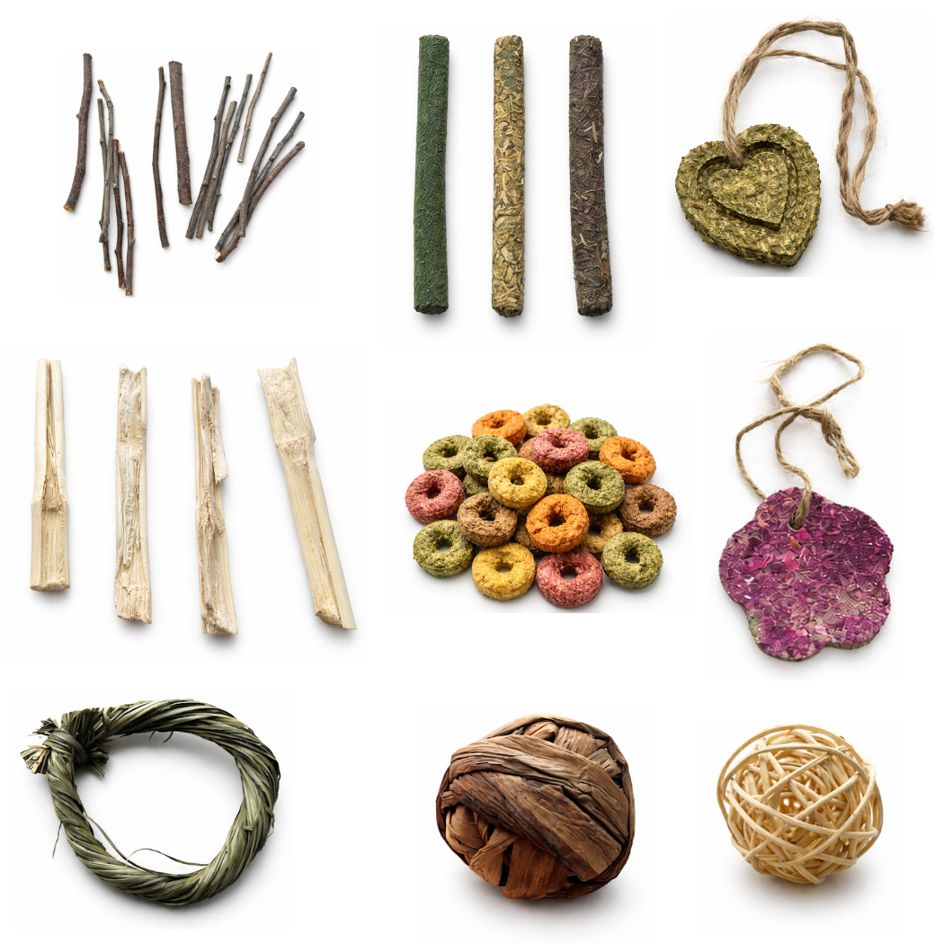 Sweet bamboo sticks provide a firm, natural chew that helps wear down overgrown teeth and supports proper dental health through regular gnawing.